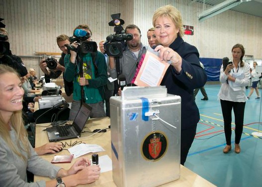 Опозициони блок, који предводи лидерка Конзервативне партије Ерна Солберг добила је, према првој пројекцији, 93 посланика, што му обезбеђује комотну већину у парламенту.